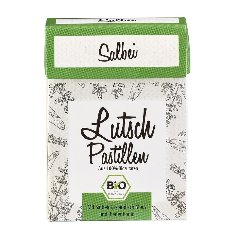 Ingrediente: guma arabica*, zahar*, sirop de glucoza*, miere*, extract de muschi islandez*, ulei de lamaie*, ulei de menta*, ulei de menta creata*, ulei de salvie*, ulei de portocale*, ulei de tee tree*, ceara carnauba*. *din agricultura ecologica