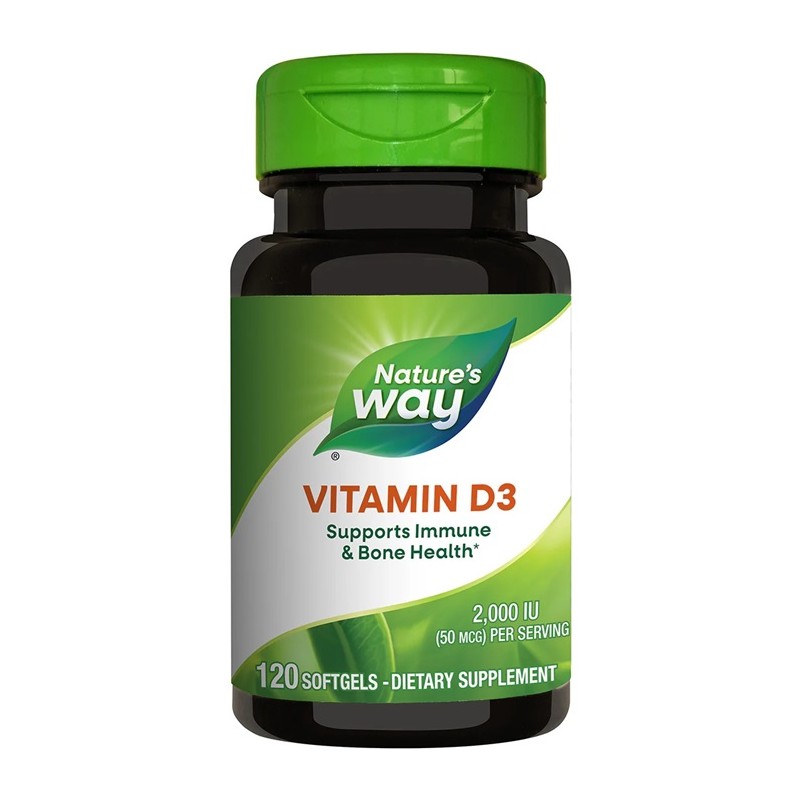 Supliment alimentar Vitamina D3 2000UI, Nature's Way, 120 capsule moi cu vitamina D3 din sursa naturala (lanolina), ce sustine sistemul osos si imunitar