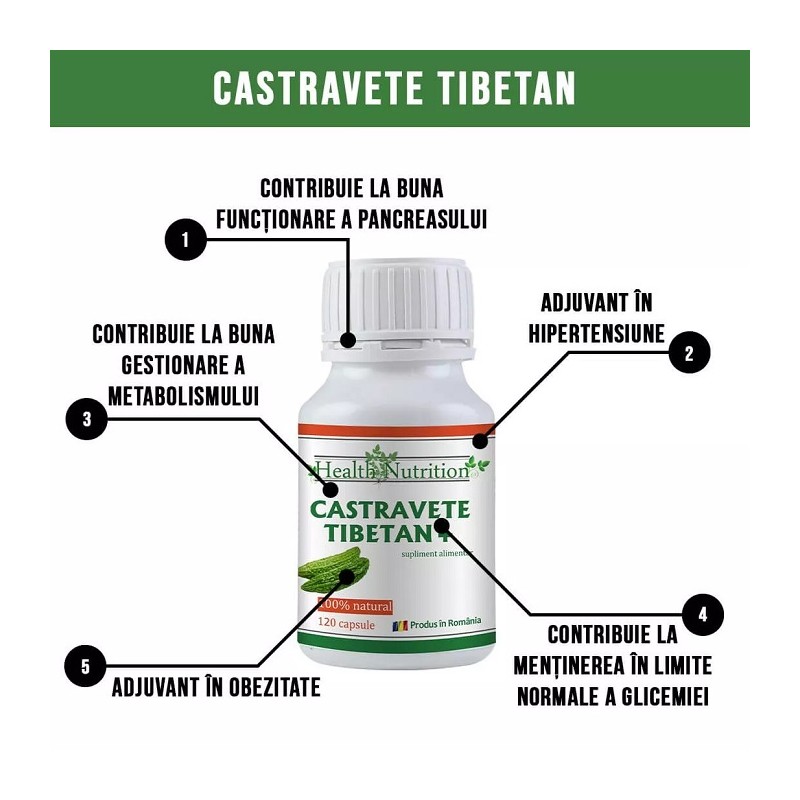 Castravete tibetan - insulina verde - este un produs foarte intens ca acțiune, cu o concentrație ridicată de principii active, destinat în principal persoanelor diabetice, dar și celor care au valori ridicate ale colesterolului sau ale trigliceridelor, precum și celor care suferă de afecțiuni cardiovasculare cronice. De asemenea, aceste ingrediente protejează vederea, ajută la o vindecare mai rapidă a rănilor, stimulează activitatea rinichilor – elemente de maximă importanță pentru calitatea vieții diabeticilor.