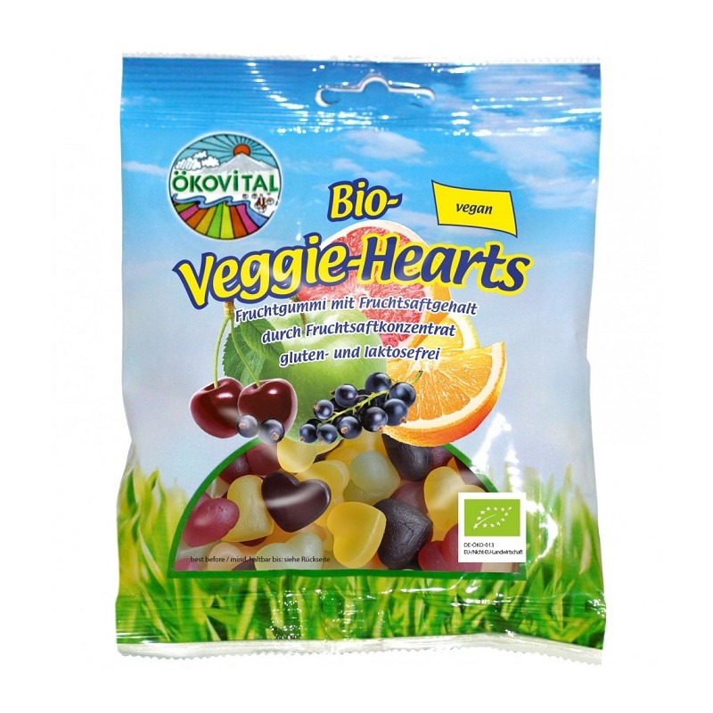 Okovital Veggie-Hearts. Aceste inimi colorate de jeleu de fructe cu amidon de porumb topesc inima fiecarui iubitor de jeleuri. Indiferent dacă este grapefruit, măr, cireșe, coacăze negre, lămâie sau portocală - exista ceva pentru fiecare gust!