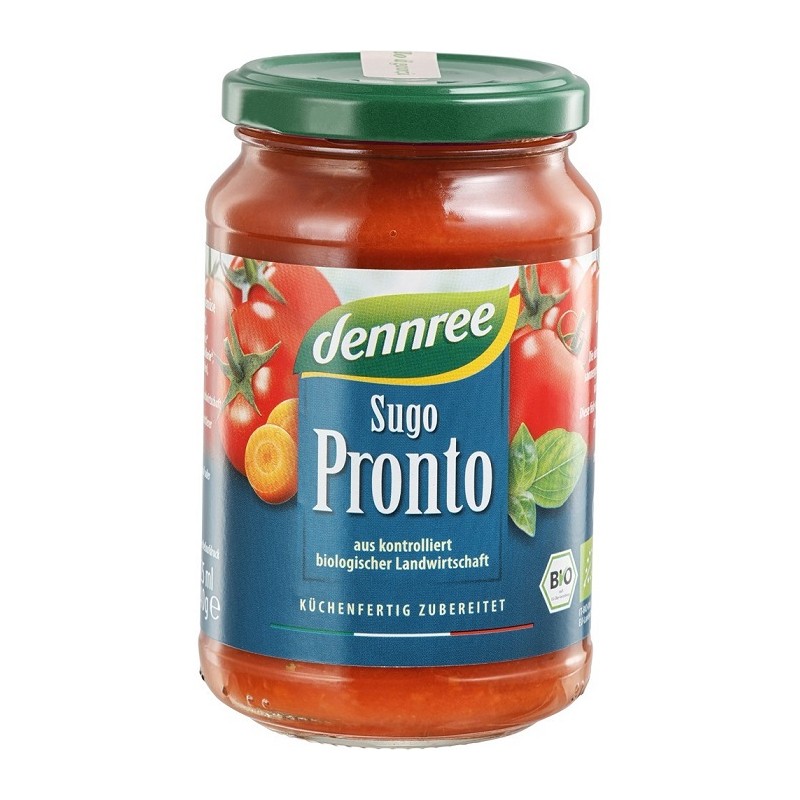 Dennree sos de rosii cu legume si busuioc bio Sugo Pronto. Acest sos este facut din rosii coapte la soare si legume aromate dupa o reteta traditionala. Gustul delicat picant il face sa fie un plus delicios la paste, orez sau ca bază pentru sosuri. Bucurați-vă de gustul fructat, aromat.