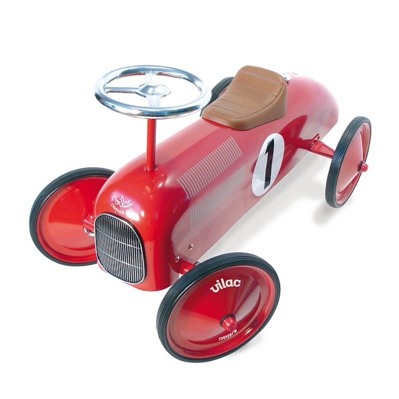 Copilul dumneavoastra, indiferent de varsta sau sex, o sa iubeasca Masina de curse Vilac. Fabricata din metal de o culoare rosu aceasta masina este extrem de robusta si ideala pentru o plimbare. Rotile au pneuri cauciucate astfel incat acest automobil retro poate fi folosit si in interior cand vremea nu va permite sa iesiti la plimbare.
