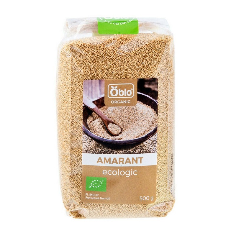 Amarantul este o pseudocereala avand boabele foarte mici. Se gateste la fel ca si quinoa sau ca si orezul, pe post de garnitura. Amarantul Obio provine din culturi ecologice certificate, fara pesticide.