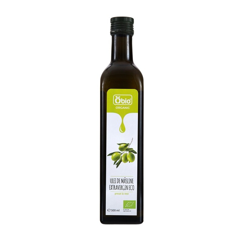 Uleiul de masline bio extravirgin Obio este obtinut din prima presa, prin presarea la rece a maslinelor bio din tara de origine Spania