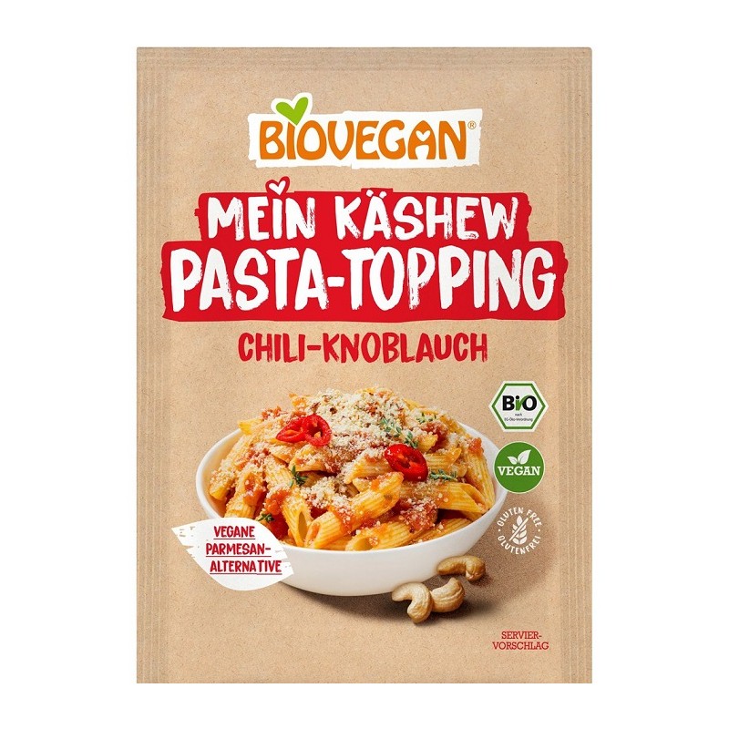 Toping vegan din caju cu chili si usturoi pentru paste este alternativa delicioasă pe bază de plante la parmezanul ras și, prin urmare, perfectă pentru bucătăria italiană vegană. Pentru topping-ul Biovegan pe bază de caju, sunt folosite doar tot ce este mai bun din natură, astfel încât să vă puteți bucura cu o conștiință curată și să nu aveți de a face fără nimic. Puteți să-l dozați cu ușurință după gustul dvs.