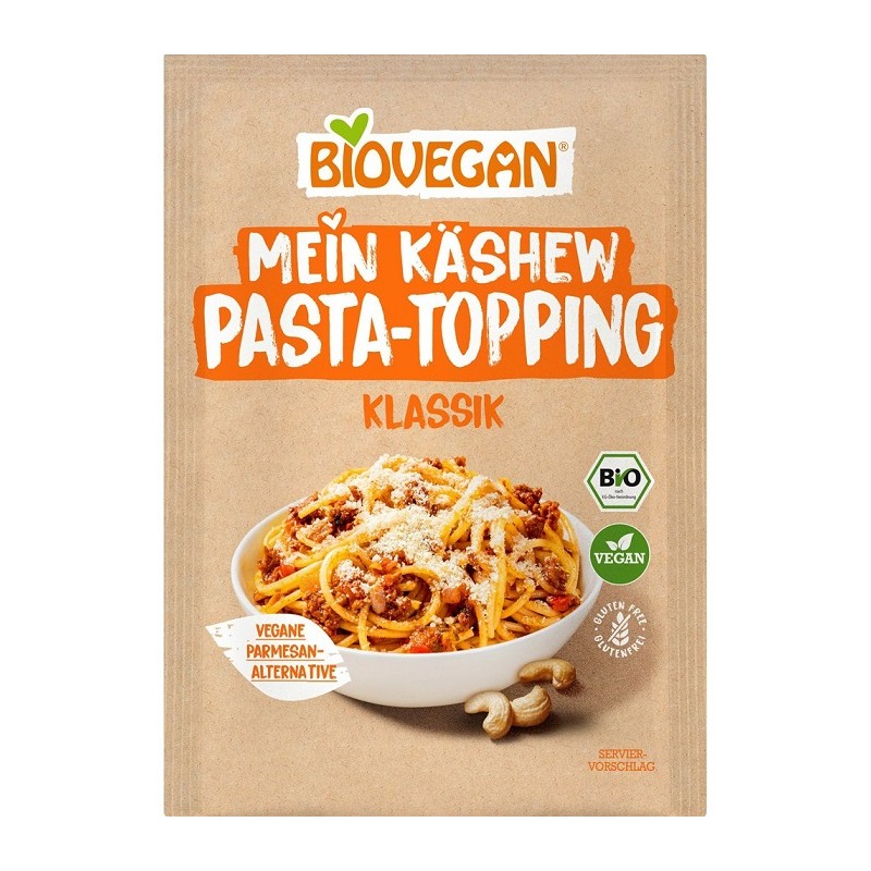 Topping-ul vegan clasic din caju bio pentru paste de la Biovegan este alternativa delicioasă, pe bază de plante, la parmezanul ras și, prin urmare, este perfectă pentru bucătăria italiană, vegană.