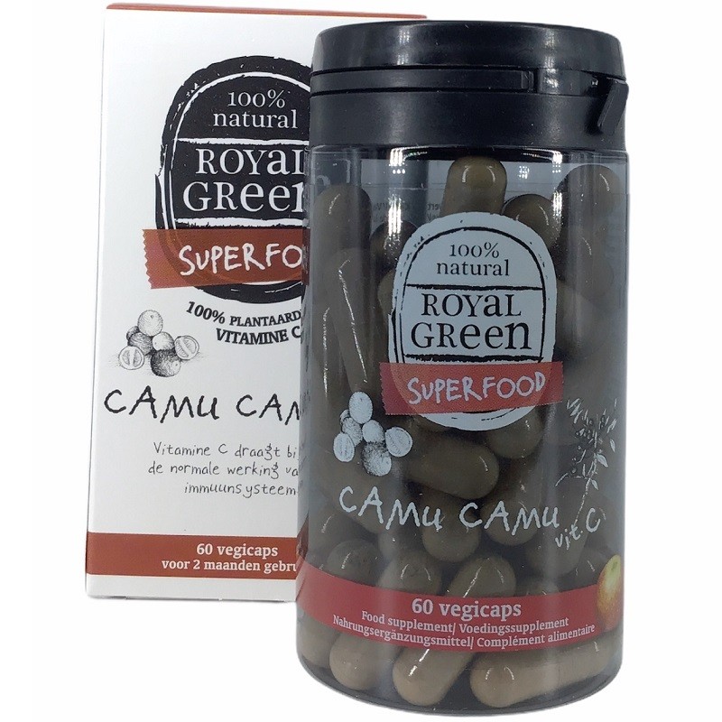 Comparat cu o portocală, Camu Camu oferă cu până la de 30 de ori mai multă vitamina C, de 10 ori mai mult fier și cu 50% mai mult fosfor. Vitamina C din Royal Green Camu Camu este naturală și, prin urmare, nu este un acid ascorbic sintetic sau așa-numitul ester-C.