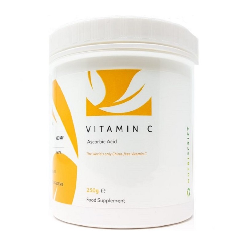 Supliment alimentar. Vitamina C de la Nutriscript este fabricata in Scotia cu patent Quali-C, fiind printre putinele forme de Vitamina C care nu provin din China.