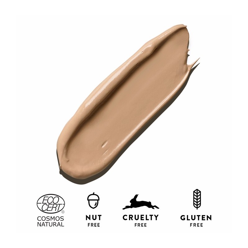 Fondul de ten natural este formulat cu pigmenți minerali puri, fără niciun strop de coloranți sintetici sau de proveniență animală.