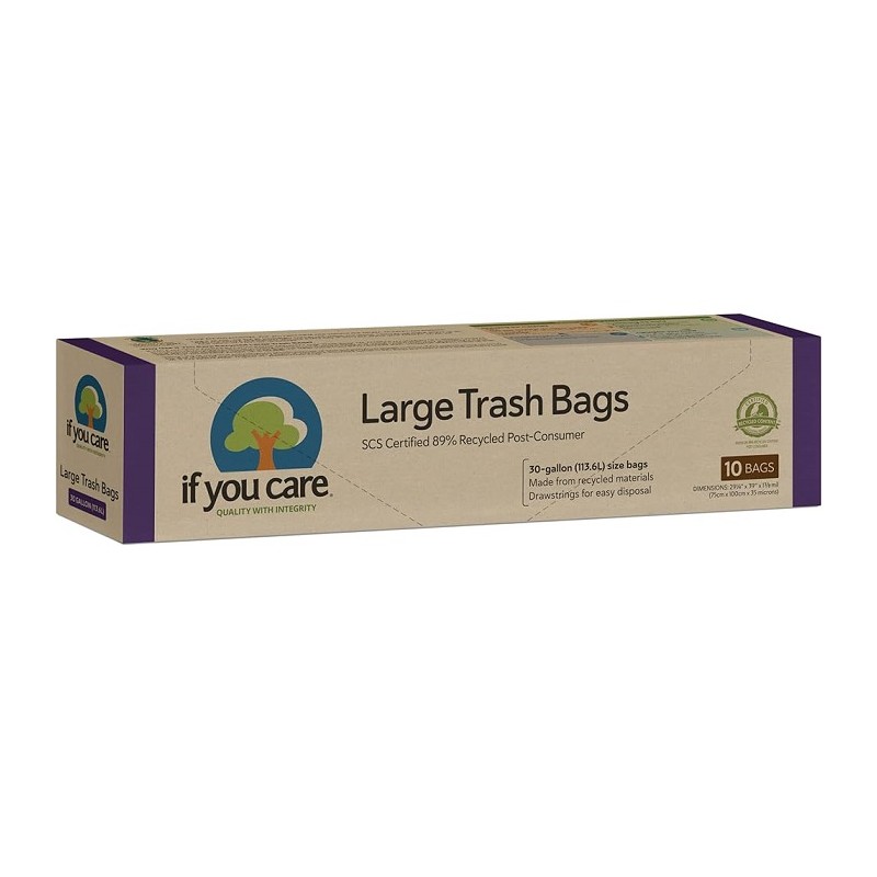 Sacii menajeri If You Care sunt fabricati din amidon de cartofi din cartofi fara OMG amestecati cu un polimer certificat, complet compostabil. Nu se adauga plastifianti.