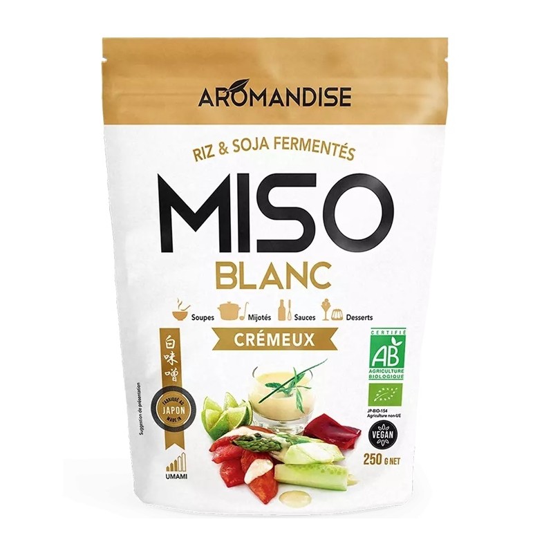 Pasta Miso alba este ideala pentru supe, sosuri albe, sosuri pentru salate sau chiar deserturi! Gustul sau foarte usor sarat, aproape dulce si textura sa cremoasa îl fac un aliat perfect pentru preparatele tale vegetale pentru a înlocui cremele, bulionul si untul!