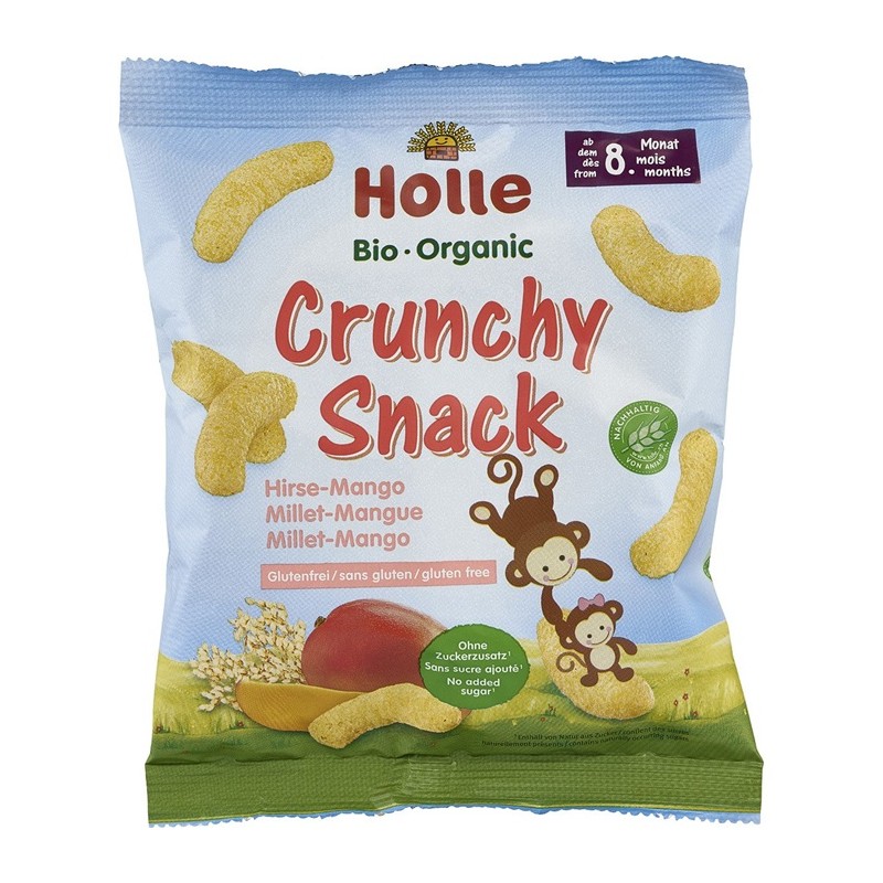 Gustare crocanta cu mei si mango bio, fara gluten, pentru copii +8 luni 25g Holle