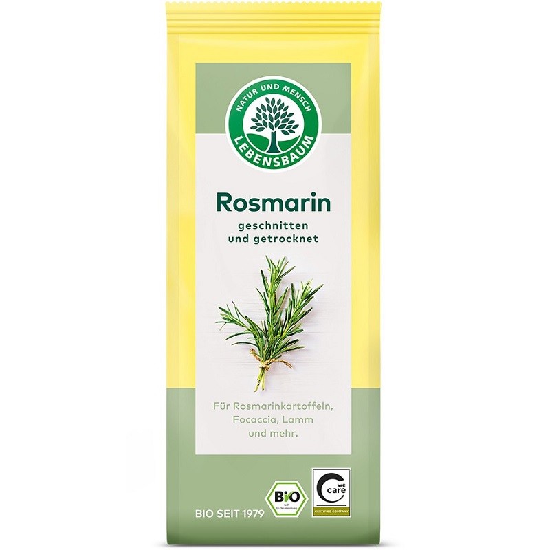 Rozmarinul este o planta aromatica cu frunze verzi-argintii si flori de culoare albastru-pal originara din Franta, Spania, Portugalia. Este o planta medicinala folosita de mii de ani in tratamentul bolilor digestive. Aroma placuta si efectele benefice asupra ficatului si bilei au determinat folosirea lui in alimentatie, rozmarinul BIO Lebensbaum fiind un condiment foarte apreciat.
