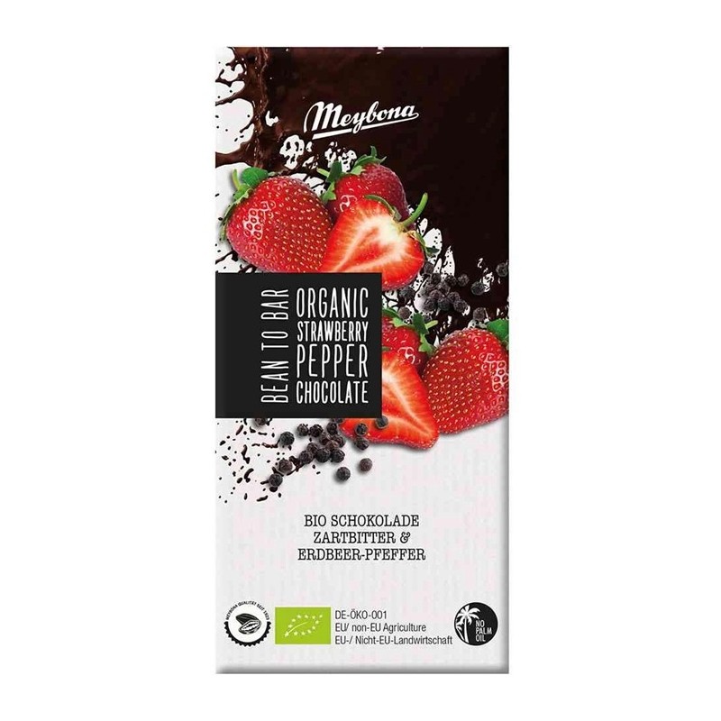 Ciocolata neagra cu capsuni si piper negru bio 100g Meybona Organic