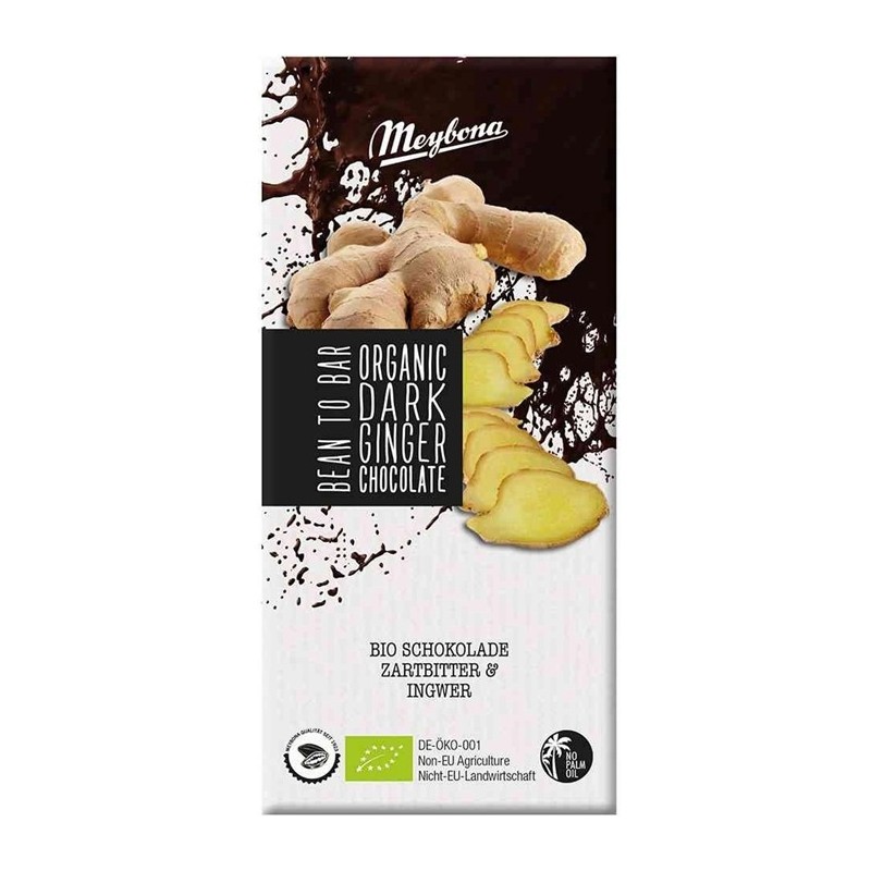 O specialitate remarcabilă și de înaltă calitate este această tabletă de ciocolată organică, făcută din ciocolată neagră cu ghimbir confiat de la Meybona. Ghimbirul picant completează ciocolata neagră delicat amară într-un mod culinar extraordinar. Pur și simplu ceresc!Ciocolată neagră organică fină, cu un conținut de cacao de cel puțin 52% ce provine direct de la producătorul german de ciocolată Meybona cu o traditie veche de peste 100 ani.
