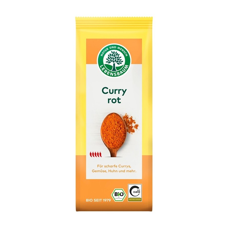 Curry rosu bio Lebensbaum. Curry-ul roșu este aromat. Acest lucru este asigurat de gustul fructat de ardei roșu, hibiscus și citronă. Pentru curry fierbinte, legume și pui. Rafinați-vă mancarea!