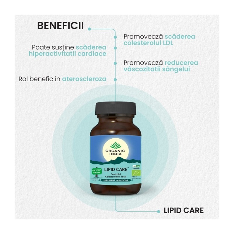 Lipid Care - Controlul Colesterolului Total, 60 capsule vegetale Organic India