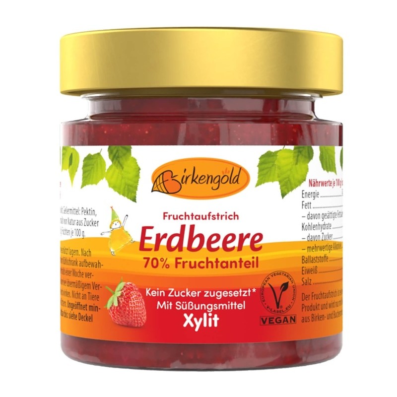 Gemul Birkengold cu fructe de capsuni are un continut de 70% de fructe organice selectate.