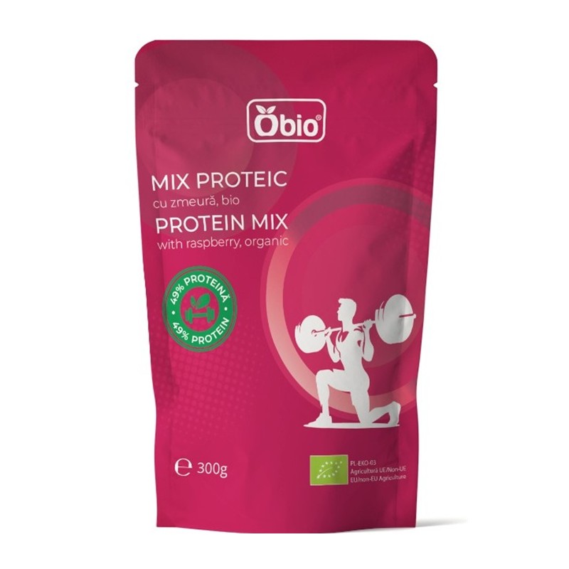 Mix proteic cu zmeura bio, 49% proteina 300g Obio