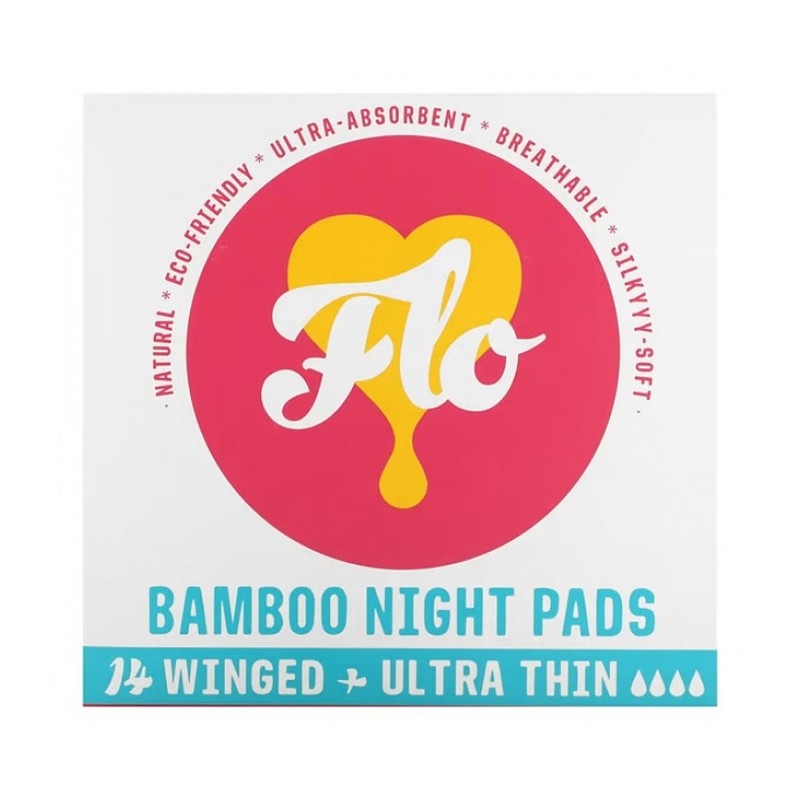 Absorbante lungi de noapte cu aripioare, din bambus 4 pic 14 buc Flo