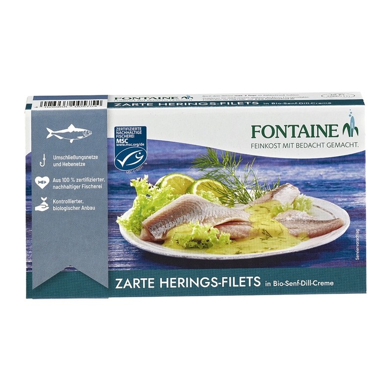 File de hering în crema bio de mustar si marar 200g Fontaine