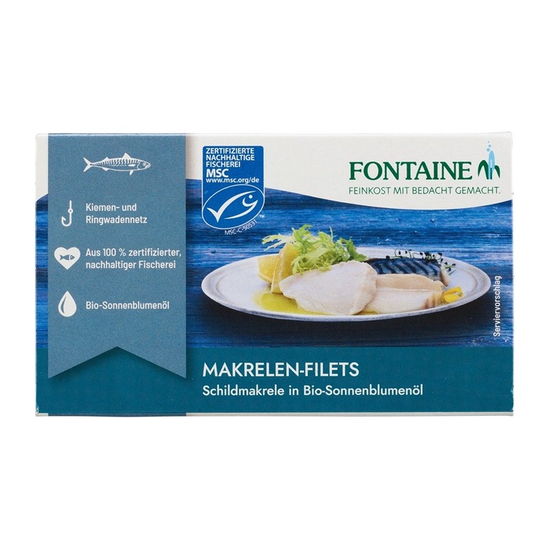 Fileul de macrou fara piele si fara oase Fontaine oferă beneficiile nutriționale ale macroului, o sursă excelentă de proteine și acizi grași Omega-3, într-o formă convenabilă și ușor de consumat. Utilizarea uleiului de floarea soarelui organic contribuie cu un gust neutru și vitamine, evitând pesticidele sintetice.