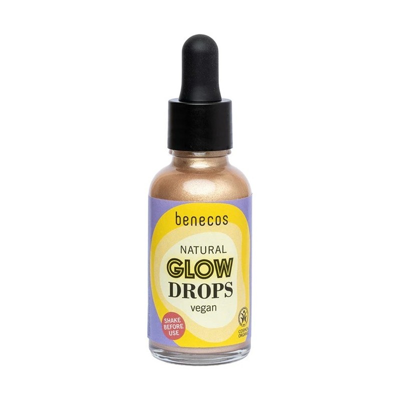 Benecos Natural Glow Drops este un elixir iluminator ultra-ușor, conceput pentru a oferi tenului o strălucire sănătoasă și naturală. Formula sa se bazează pe ingrediente vegetale bio, fiind certificat Cosmos Organic și vegan. Formulate cu suc bio de aloe vera, picaturile iluminatoare hidrateaza intens si lasa tenul incredibil de proaspat si luminos. Datorita particulelor aurii fine, pielea capata instant un glow natural, cu aspect de piele stralucitoare din interior.