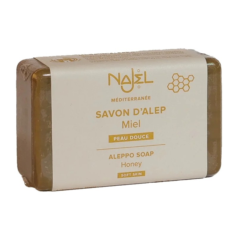 Sapun de Alep cu miere - pentru o piele moale, curată și plină de strălucire naturală. Acest săpun ancestral îmbină virtuțile hrănitoare ale uleiului de măsline cu proprietățile calmante ale uleiului de boabe de dafin. O formulă naturală ce respectă pielea și mediul.
