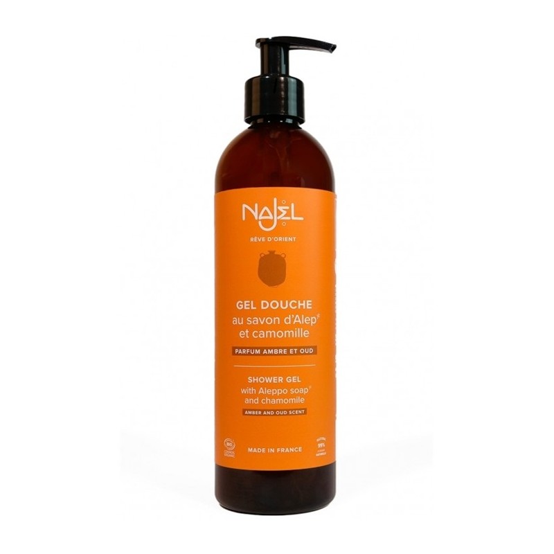 Gel de dus bio cu sapun de Alep, parfum Ambra si Oud 500ml Najel