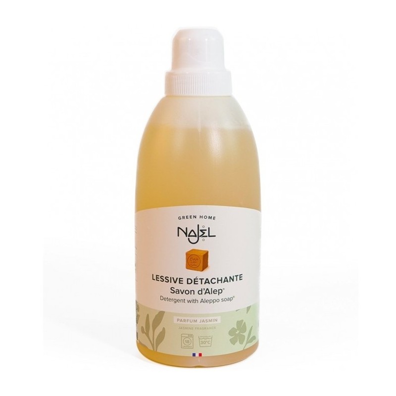 Detergentul lichid pentru rufe cu săpun de Alep și iasomie Najel este o soluție ecologică și hipoalergenică, potrivită pentru persoanele cu piele sensibilă sau alergii. Acesta îmbină proprietățile tradiționale ale săpunului de Alep (pe bază de ulei de măsline și ulei de dafin) cu un parfum delicat de iasomie.