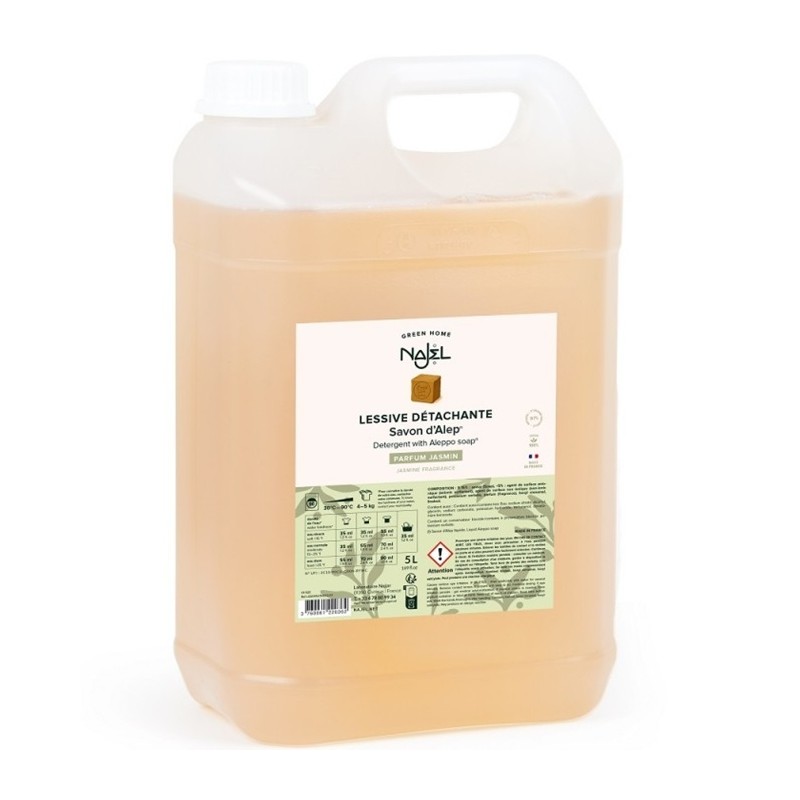 Detergentul lichid pentru rufe cu săpun de Alep și iasomie Najel este o soluție ecologică și hipoalergenică, potrivită pentru persoanele cu piele sensibilă sau alergii. Acesta îmbină proprietățile tradiționale ale săpunului de Alep (pe bază de ulei de măsline și ulei de dafin) cu un parfum delicat de iasomie.