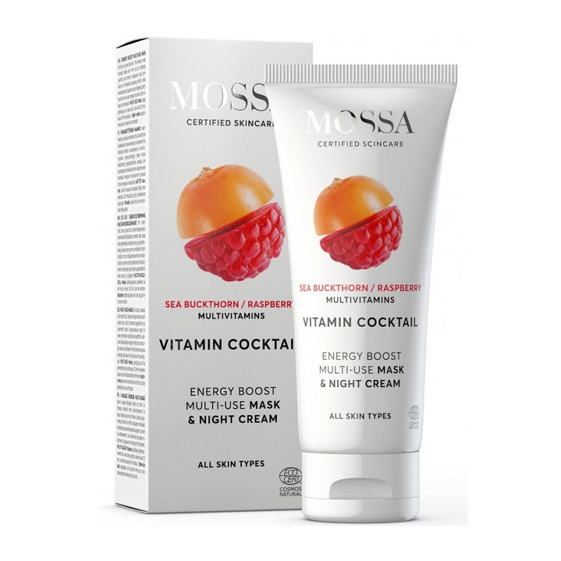Produsul Vitamin Cocktail Multi-Use Energy Boost Mossa este un tratament versatil 2-în-1 (cremă de noapte și mască). Revitalizeaza tenul obosit, tern sau deshidratat.