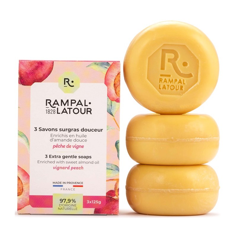 Cutie 3 sapunuri naturale cu piersica 3x125g Rampal Latour
