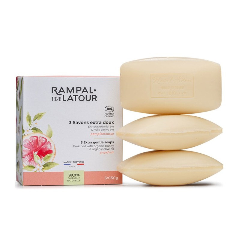 Pachet 3 sapunuri organice cu miere si grapefruit 450g Rampal Latour