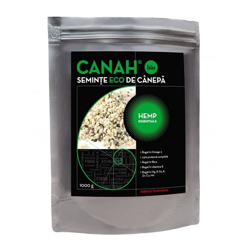 Bogăţia de nutrienţi conţinută în miezul seminţelor decorticate de cânepă constă într-un procent generos de proteină vegetală, acizi graşi polinesaturați, vitamine (B1, B3, B6 şi E) şi minerale (fosfor, potasiu, magneziu, fier, zinc, cupru şi mangan). Seminţele decorticate de cânepă Hemp Essentials sunt un produs Canah, realizat într-un sistem de management al siguranţei alimentare codificat ISO 22000 certificat de TÜV Rheinland. Produsul este împachetat în ambalaje cu certificare „food grade” (destinate ambalării produselor alimentare), care permit resigilarea prin închiderea tip „fermoar”.