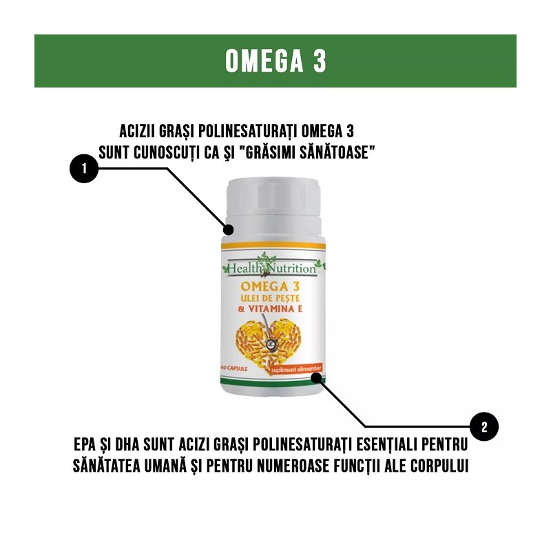 Omega 3 este un grup de acizi grași esențiali care pot fi aprovizionați doar prin dieta alimentară, deoarece organismul uman nu este capabil să-i producă el însuși. Acizii grași polinesaturați omega 3 sunt cunoscuți ca şi "grăsimi sănătoase". Majoritatea cercetărilor privind familia omega 3 au fost realizate pentru acidul eicosapentaenoic (EPA) și acidul docosahexaenoic (DHA). EPA și DHA sunt acizi grași polinesaturați esențiali pentru sănătatea umană și pentru numeroase funcții ale corpului. Aceşti acizi se găsesc în principal în peștii grași. Unele organizații din domeniul sănătății recomandă o doză zilnică de 500 mg de EPA și DHA pentru adulții sănătoși.
