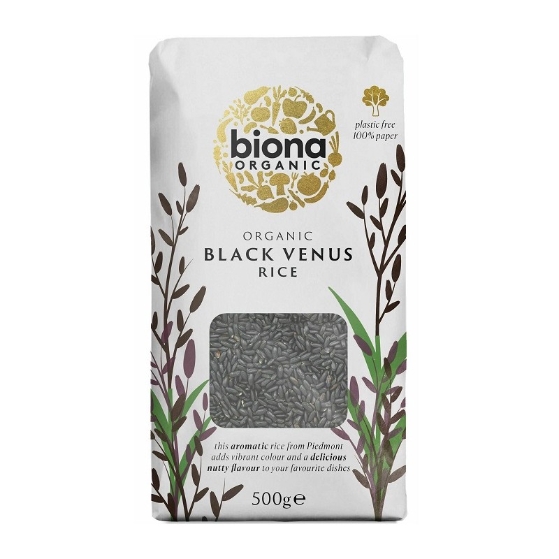 Ambalaj 100% compostabil, plastic free. Orez negru ecologic, certificat bio, din regiunea italiana Piemont. Un orez aromatic cu o delicioasa aroma de nuci.