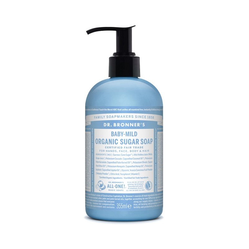 Toate sapunurile Dr Bronner contin Vitamina E naturala din seminte de floarea soarelui si acid citric din tapioca fermentata. Astfel sunt inlocuiti conservantii chimici folositi in alte sapunuri.