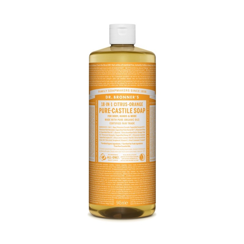 Sapun lichid de Castilia Dr Bronner cu aroma de citrice: unica, revigoranta, proaspata. Mirosul de ulei organic de citrice inconfundabil! Dr Bronner a combinat ulei organic de portocala, lamaie si lime intr-o experienta unica.