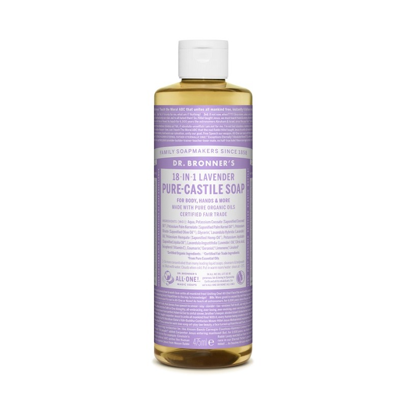 Sapun lichid de Castilia organic Dr Bronner cu aroma relaxanta de lavanda, un parfum imbietor pentru suflet si minte. Ideal de folosit seara pentru un somn linistit si dimineata pentru a-ti incepe ziua in armonie.