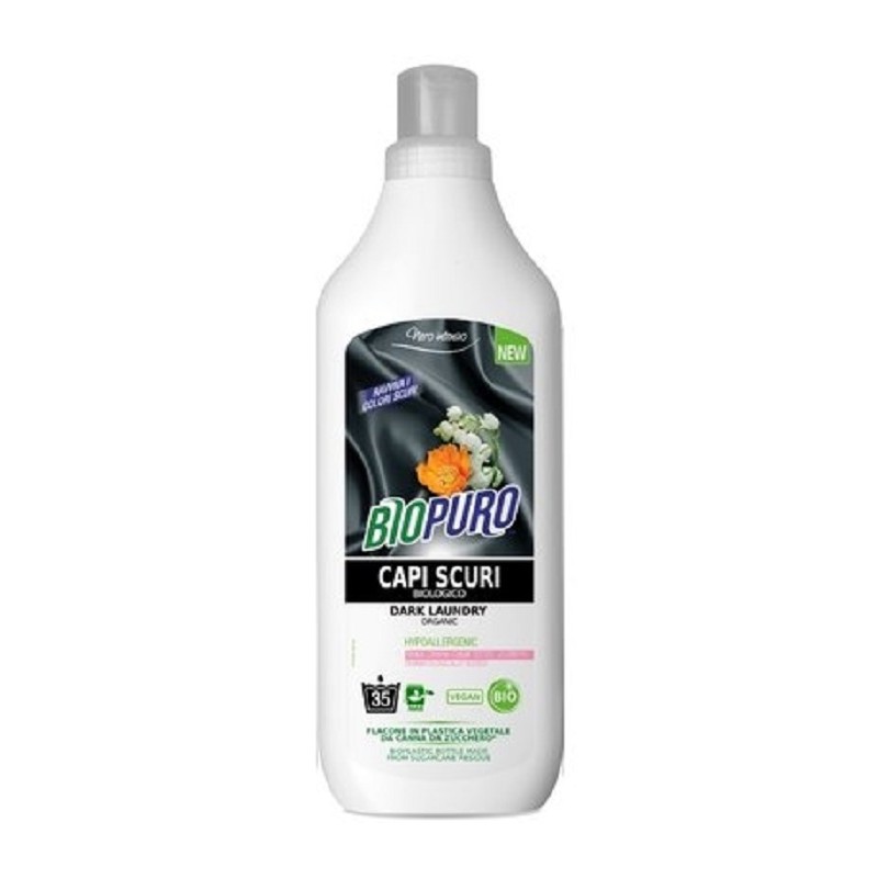 Detergentul Biopuro pentru rufe negre si inchise la culoare este conceput special pentru a preveni matuirea si decolorarea tesaturilor negre si inchise la culoare. Scoate petele de transpiratie, protejeaza fibrele, elimina mirosurile, catifeleaza rufele. Se poate folosi atat pentru spalare manuala, cat si pentru spalarea in masina de spalat automata.