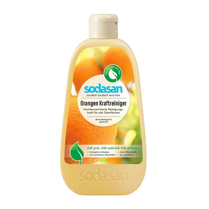 Soluția universală de curățare cu portocale bio Sodasan este un concentrat extrem de eficient, recunoscut pentru puterea mare de degresare și compoziția 100% naturală. Principalul său beneficiu este economia extraordinară: un singur flacon de 500 ml poate genera până la 1650 litri de soluție gata de utilizare