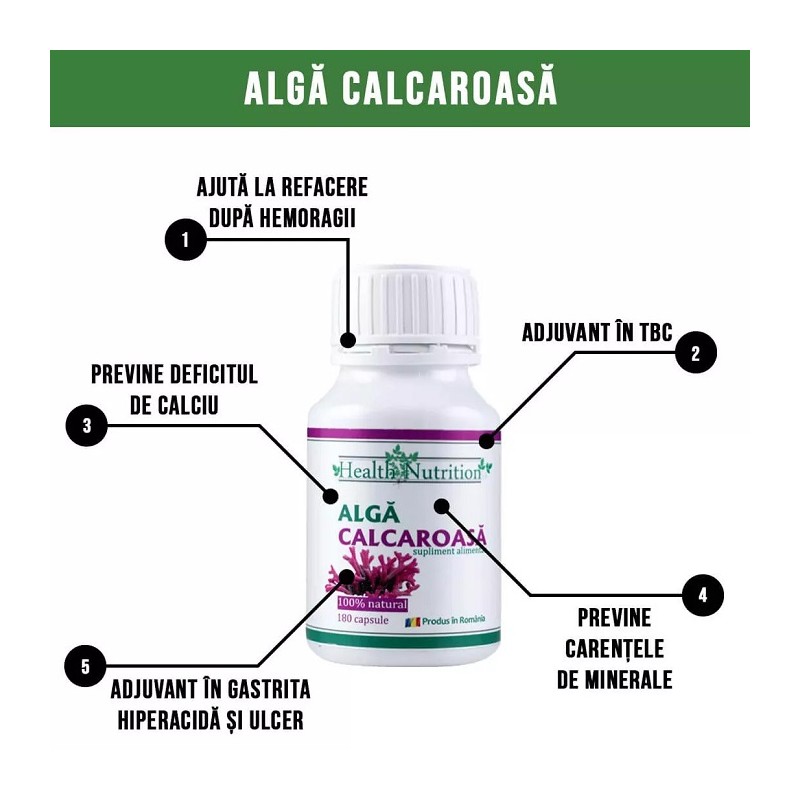 Alga calcaroasa (Lithothamnium calcareum) 180 capsule Health Nutrition