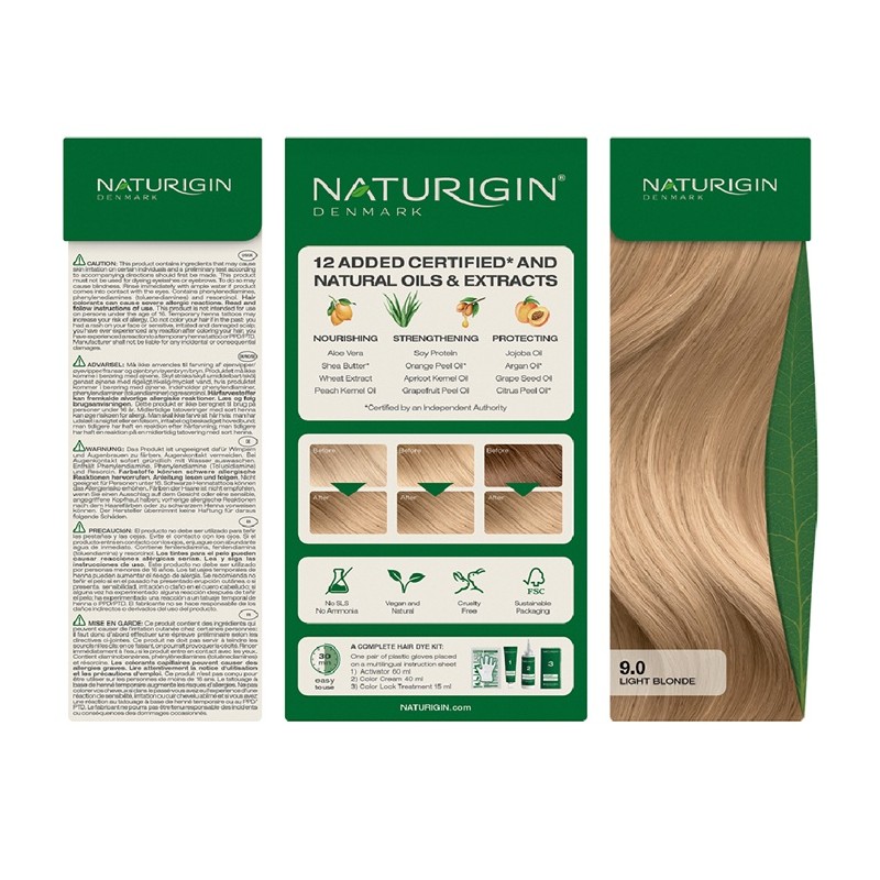 Vopsea de par naturala, permanenta 9.0 Blond Natural Deschis 115ml Naturigin