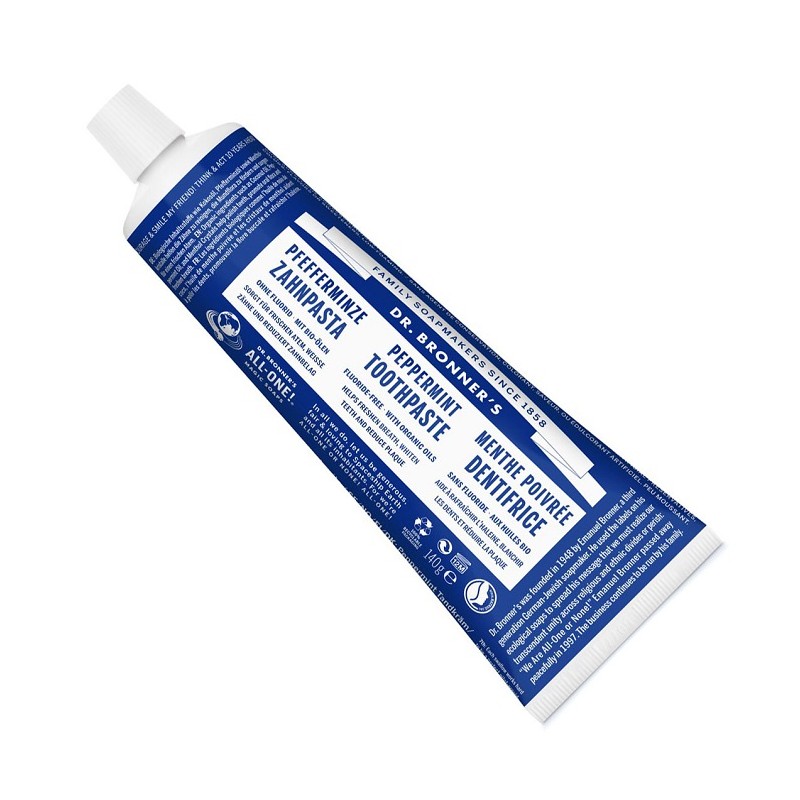 Pasta de dinti bio fara fluor Dr Bronner pentru albire, contine menta ce improspateaza respiratia. Ajuta si la reducerea placii bacteriene!