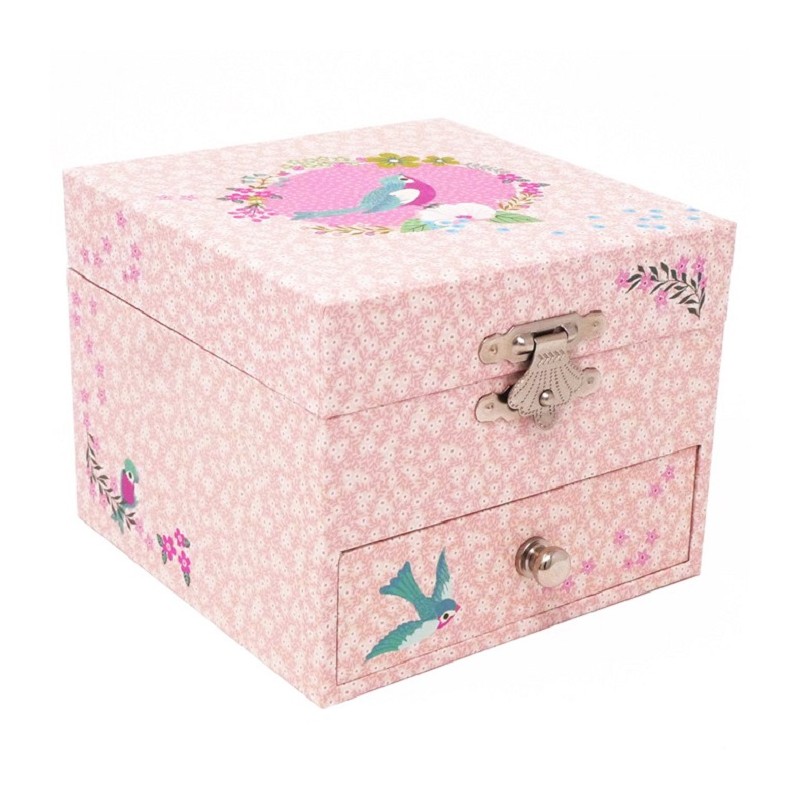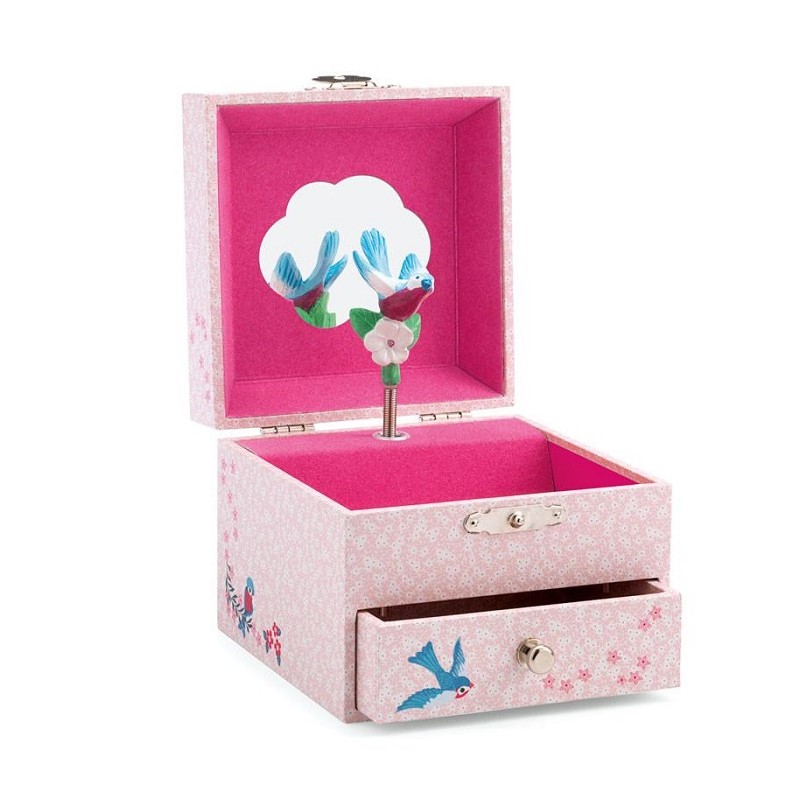Cutie muzicală cu figurină pasăre, pentru bijuterii, cu sertar.