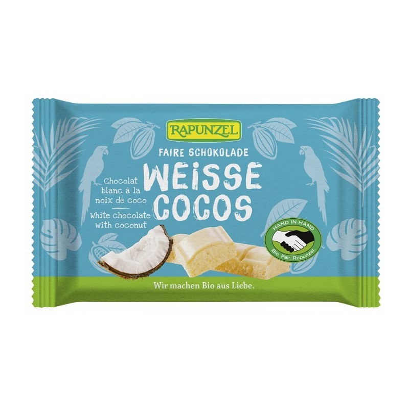 Ciocolata alba bio, cu bucăți fine de cocos bio și vanilie Bourbon autentică - comercializată în conformitate cu criteriile de comerț echitabil de către partenerii Rapunzel. În plus față de materiile prime selectate, pudra de cacao este adevăratul secret din spatele unei ciocolate grozave. Conching este o artă care dezvoltă pe deplin bogăția aromelor inerente ale pudrei de cacao, într-un proces pas cu pas, și conferă ciocolatei finețea sa perfectă și netezimea delicată și incomparabilă.