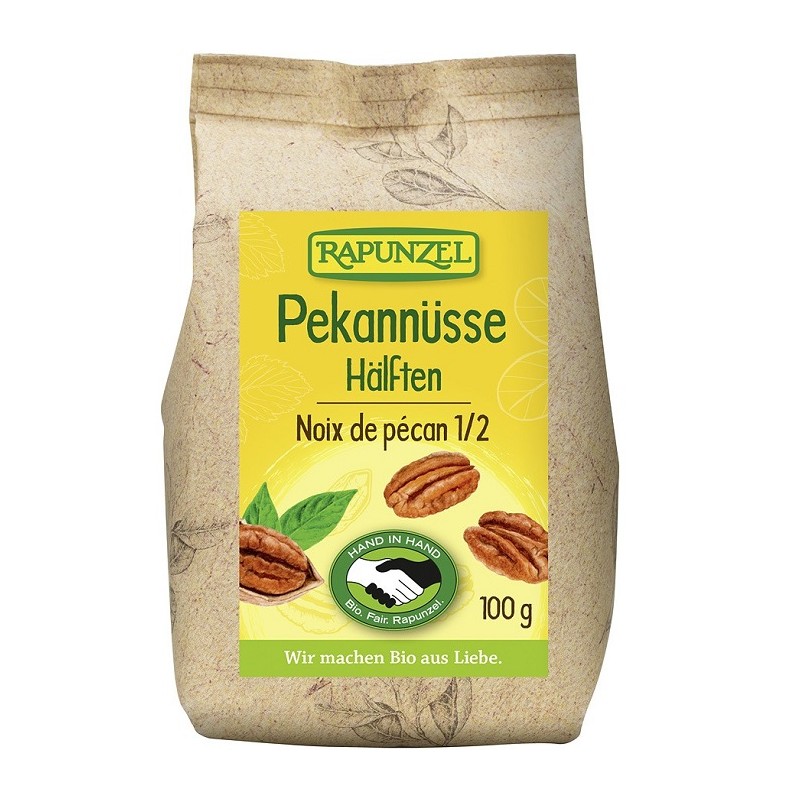 Nucile Pecan bio Rapunzel sunt delicatese hrănitoare, preţuite de Indieni. Pecanul se caracterizează prin aroma sa completă, de nuci picante. Pomul de pecan aparține familiei nucilor. Producția de nuci Pecan este inclusă într-un program de comerț echitabil pe care Rapunzel îl desfășoara împreună cu partenerul Topará din Peru. Nucile sunt scuturate din copac și colectate manual. Sunt uscate, crăpate, curățate, sortate și ambalate.