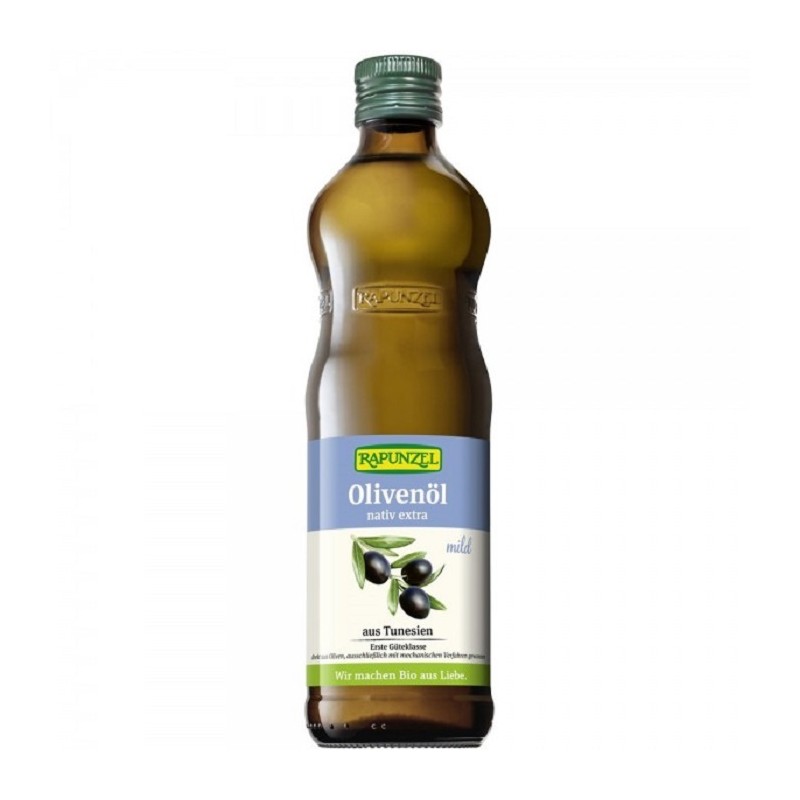 Uleiul de măsline se obține din fructele măslinului (Olea europaea). Măslinele recoltate pentru Uleiul de măsline Rapunzel sunt aduse imediat după recoltă în fabrică și sunt presate, în acest fel se poate ține la un nivel cât de redus posibil conținutul de acizi grași. Acesta determină, pe lângă sortimentul de măsline, clima și momentul recoltei, calitatea uleiului. Măslinele bio ajunse în fabrică sunt mai întâi spălate după care tocate, presate și ulterior centrifugate. Astfel uleiul se separă de apa lăsată de măsline. Uleiul de măsline Rapunzel provine din regiunile de măslini tradiționale din Tunisia