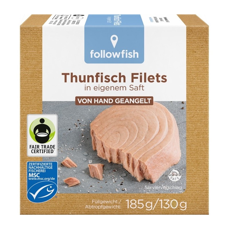 Tonul Followfish provine de la unul dintre cele mai durabile tipuri de pescuit: pescuitul cu cârlige și paragate în Maldive – comert echitabil (fair trade cu partenerii locali). Aici, tonul este pescuit individual cu ajutorul unor bastoane (bambus), toate cu mâna. Și aceasta de peste 900 de ani.